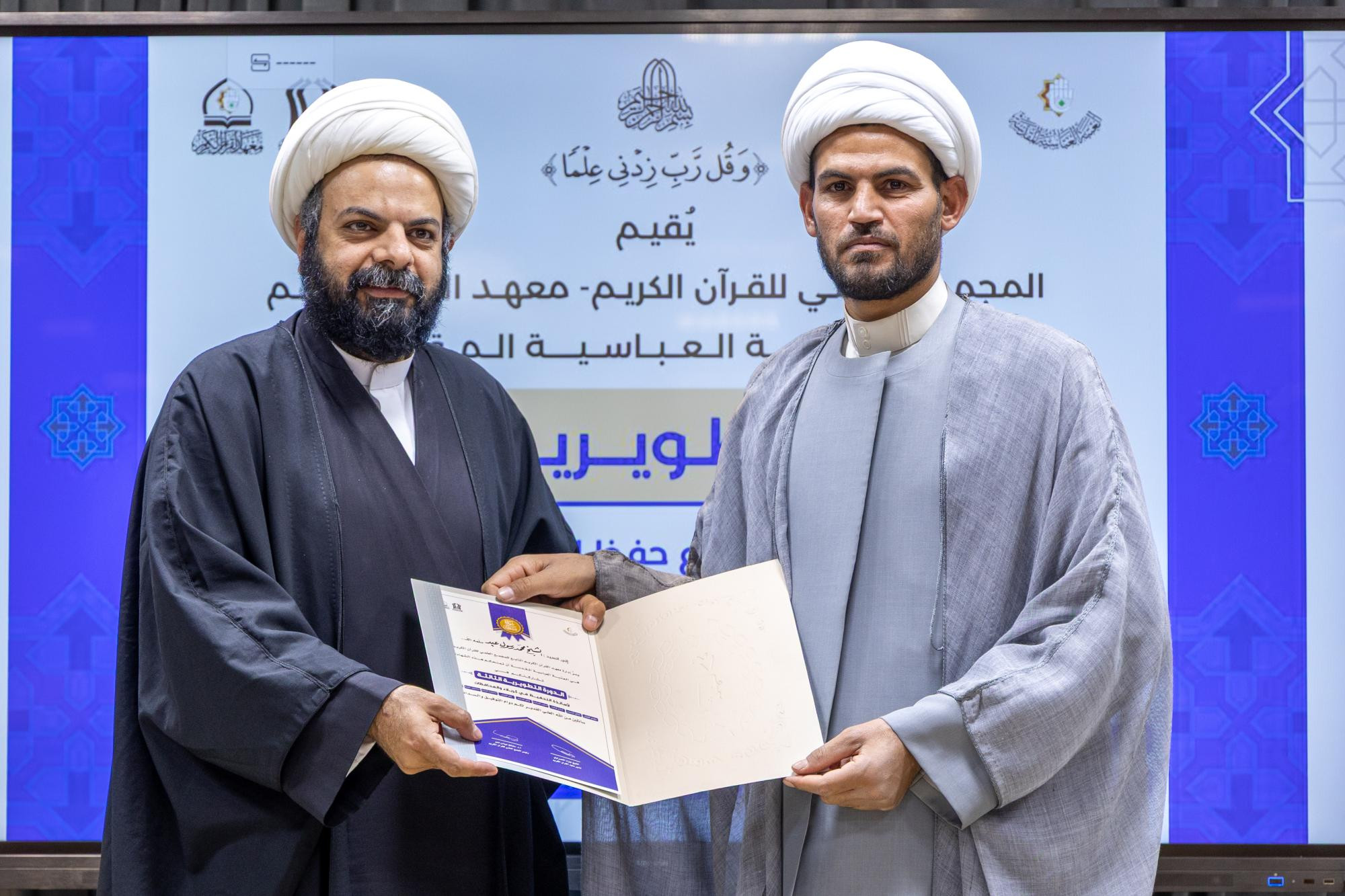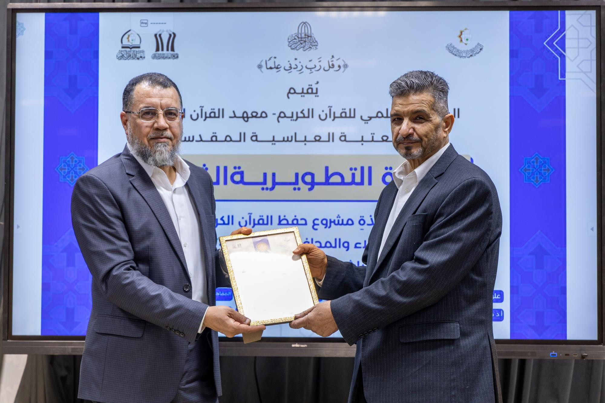 اختتم المجمع العلمي للقرآن الكريم في العتبة العباسية المقدسة الدورة التطويرية الثالثة لأساتذة مشروع حفظ كتاب الله في محافظة كربلاء. وقال مدير معهد القرآن الكريم في كربلاء التابع للمجمع، الشيخ جواد النصراوي: إنّ "المعهد اختتم الدورة التطويرية الثالثة الخاصة بأساتذة مشروع حفظ القرآن الكريم، التي أشرف على التدريس فيها نخبة من الأساتذة الأكاديميين، إذ قدموا محاضرات في علوم القرآن، وطرائق التدريس، وأحكام التلاوة، وأساليب التحفيظ، ولوائح التحكيم، وعلم النفس، والمفاهيم القرآنية، ومحاضرات علمية وتربوية". وأضاف، أنّ "الدورة أُقيمت في مقر المعهد بكربلاء استمرت ثمانية أيام، بواقع يومين في الأسبوع، وشارك فيها أكثر من 55 أستاذًا من أساتذة مشروع حفظ القرآن الكريم الموزعين في كربلاء والمحافظات". وبيّن النصراوي، أنّ "المعهد يهدف من إقامة هذه الدورة إلى تطوير مهارات الأساتذة، وزيادة معارفهم، وتعزيز قدرتهم على إدارة حلقات مشروع الحفظ، وضمان ديمومة العمل القرآني واستمراره بأفضل صورة". وأوضح، أنّ "حفل الختام شهد فقرات متنوعة، منها تلاوة افتتاحية للحافظ حسين القزويني، وكلمة للمعهد ألقاها مسؤول وحدة التحفيظ فيه الشيخ علي الرويعي، استعرض فيها تفاصيل الدورة وأهدافها، وأهمية استمرار تطوير المهارات لدى أساتذة التحفيظ، تلتها تلاوة جماعية قدمها مجموعة من طلبة مشروع حفظ القرآن الكريم في كربلاء، واختُتم الحفل بتوزيع الشهادات التقديرية والهدايا على أساتذة الدورة وطلبتها".