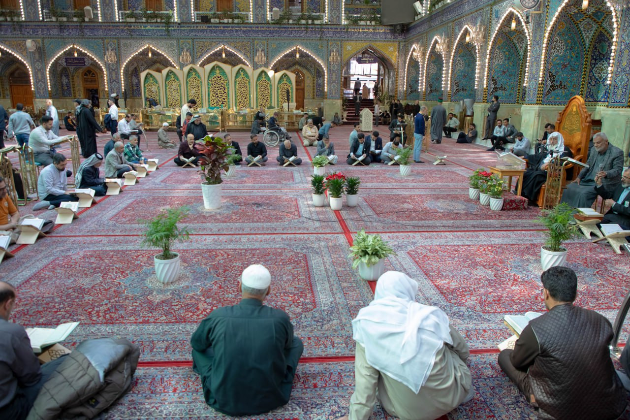 أقام المَجمَع العلمي للقرآن الكريم في العتبة العباسية المقدسة، ختمةً قرآنية تعليمية لزائري مرقد أبي الفضل العباس (عليه السلام) وينظم الختمة معهد القرآن الكريم في كربلاء التابع للمَجمَع، طوال أيام شهر رمضان المبارك، ويُتلى فيها جزءٌ كاملٌ من القرآن الكريم يوميًّا. وقال مسؤول وحدة التلاوة وإعداد القرّاء في المعهد، السيد علاء الدين حمود: إنَّ "الختمة تشهد مشاركة زائرين وافدين إلى كربلاء المقدسة من مختلف أنحاء العالم، وتتضمَّن فقراتٍ تعليميةً تُعنى بتصحيح القراءة وإتقان التلاوة، إلى جانب عرض أحاديث نبوية شريفة وأقوالٍ لأهل البيت (عليهم السلام) تُبيِّن أهمية تلاوة القرآن الكريم في الشهر الكريم". وأضاف: أنَّ "الختمة تُقام بنيّة التعلّم، وتُقدَّم خلالها ملاحظاتٌ تصحيحيةٌ مباشرة، بما يضمن تحقيق الفائدة العلمية والعملية للمشاركين". وتأتي الختمة ضمن أنشطة معهد القرآن الكريم وفعالياته التي يقيمها في شهر رمضان المبارك بهدف نشر الثقافة القرآنية.