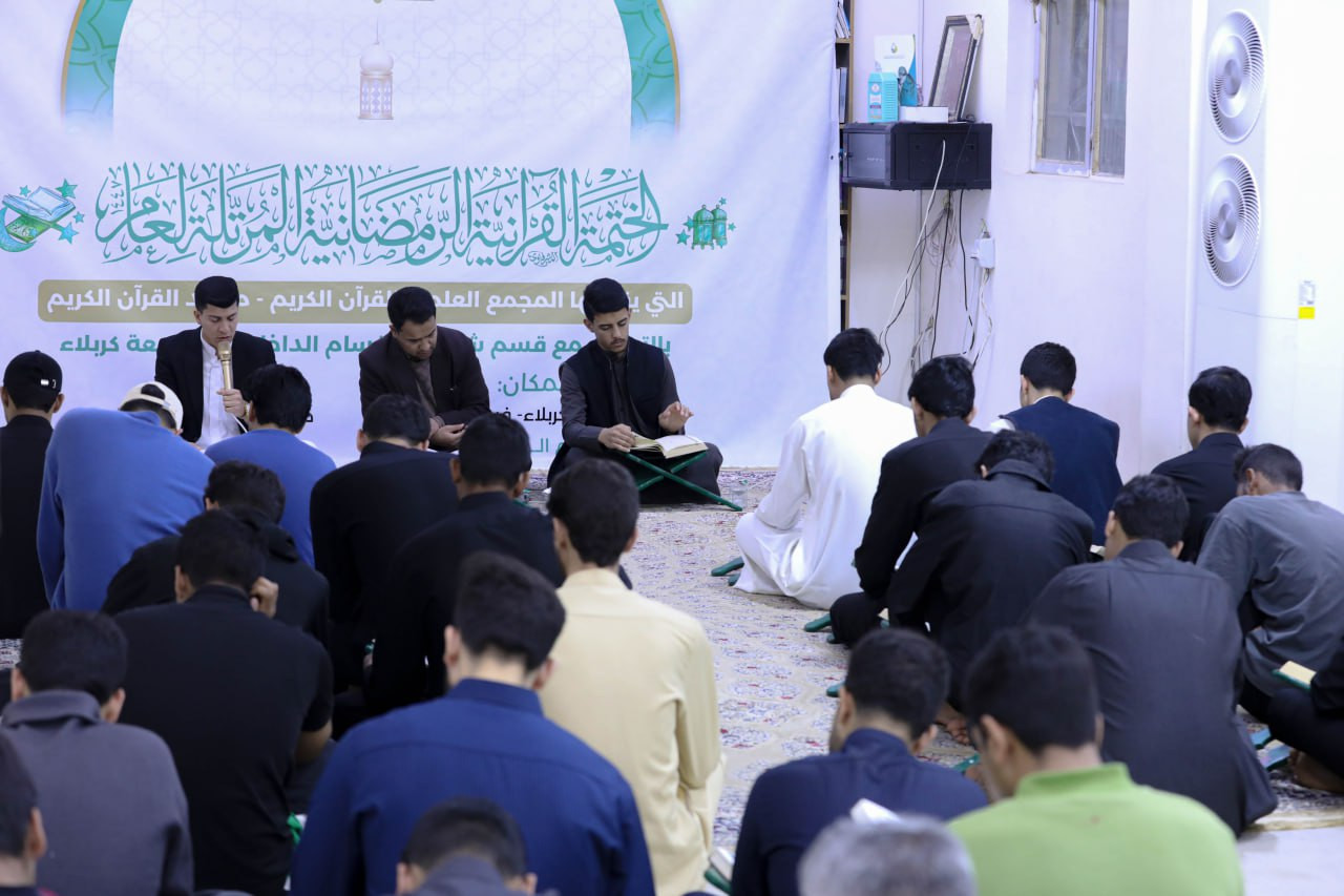 أقام المجمع العلمي للقرآن الكريم في العتبة العباسية المقدسة ختمة قرآنية رمضانية مرتلة لطلبة الأقسام الداخلية في جامعة كربلاء. وينظم الختمة معهد القرآن الكريم في كربلاء التابع للمجمع، ضمن سلسلة ختماته الرمضانية المتنوعة التي يقيمها في عموم المحافظة. وقال مدير المعهد الشيخ جواد النصراوي: إنّ "المعهد خصص ضمن برنامجه الرمضاني ختمة قرآنية لطلبة الأقسام الداخلية في جامعة كربلاء، يُتلى فيها جزء يوميًّا بعد الإفطار؛ بهدف نشر الثقافة القرآنية في نفوس الطلبة، وإحياء ليالي الشهر الفضيل بتلاوة كتاب الله تعالى". وأضاف أنّ "هذه الختمة تأتي ضمن مجموعة الختمات المرتلة والتعليمية التي أطلقها المعهد في كربلاء؛ لترسيخ القيم الإيمانية في شهر رمضان المبارك".