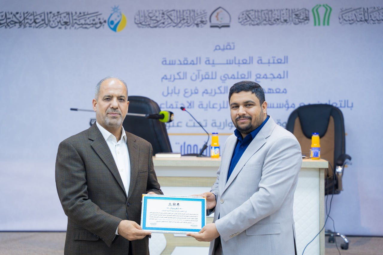 نظّم المجمع العلمي للقرآن الكريم في العتبة العباسية المقدسة ممثّلًا بمعهد القرآن الكريم فرع بابل ندوةً حواريةً بعنوان «فنّ الإلقاء وأثره في شرح موضوعات علم التجويد»، بالتعاون مع مؤسسة العين للرعاية الاجتماعية. ألقى المحاضرة القارئ الدكتور رافع العامري، الذي قدّم عرضًا علميًّا وعمليًّا حول أساليب الإلقاء المؤثّر وأثره في إيصال المفاهيم القرآنية الدقيقة بأسلوب تربويٍّ وتفاعلي. وشهدت الندوة حضورًا واسعًا من معلّمي أحكام التلاوة والتجويد، الذين تفاعلوا مع محاورها النقاشية، مؤكدين أهميّة مثل هذه البرامج في تطوير مهاراتهم التعليمية والإلقائية، بما ينعكس إيجابًا على أداء الدروس القرآنية في الحلقات والمدارس. تأتي هذه الندوة ضمن سلسلة من البرامج العلمية التي ينفّذها معهد القرآن الكريم – فرع بابل، في إطار خطّته الهادفة إلى رفع كفاءة أساتذة التجويد وتوسيع دائرة الوعي بالتواصل الفعّال في تعليم القرآن الكريم.