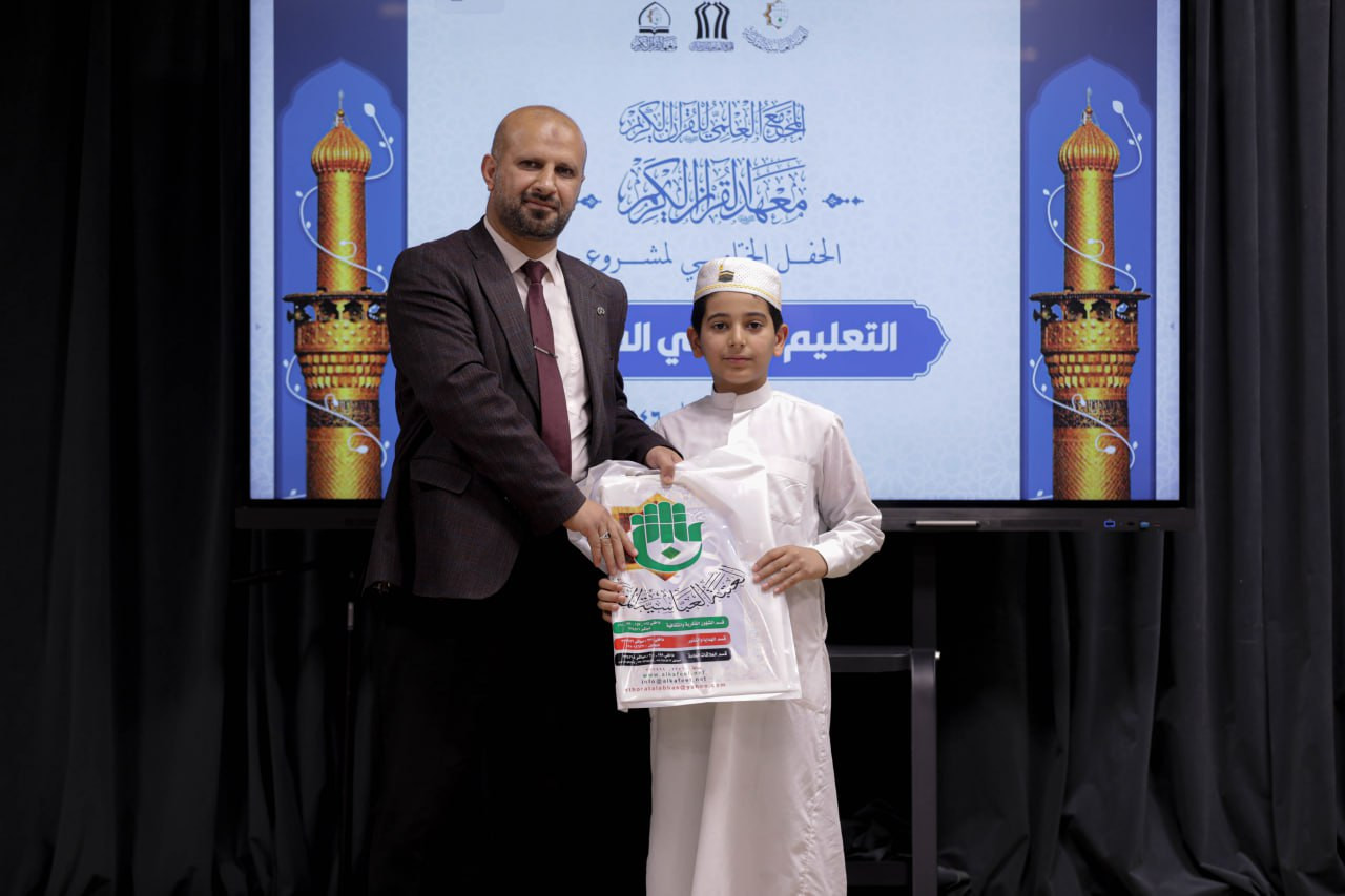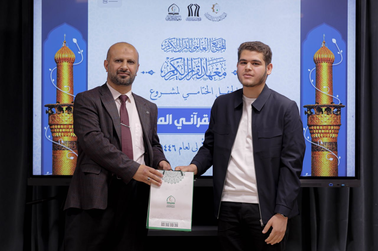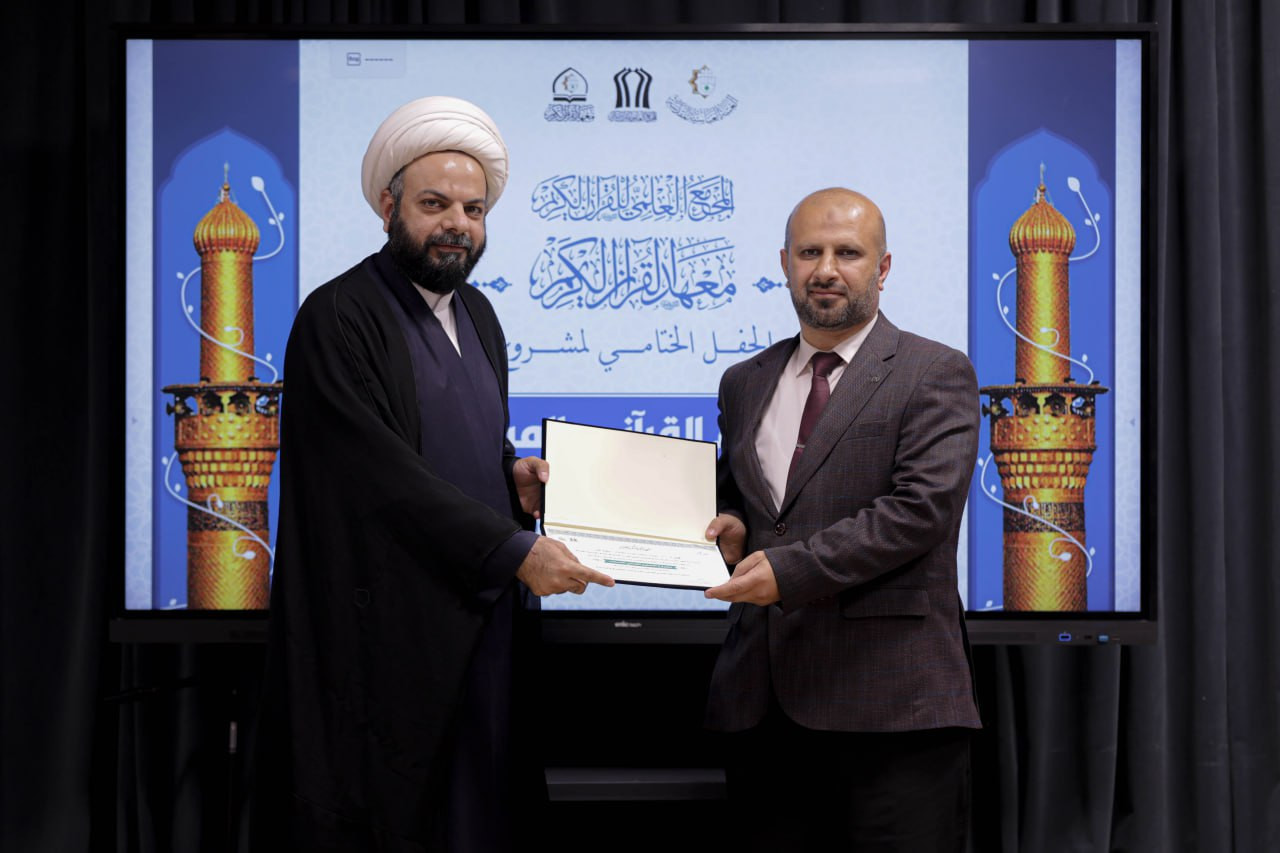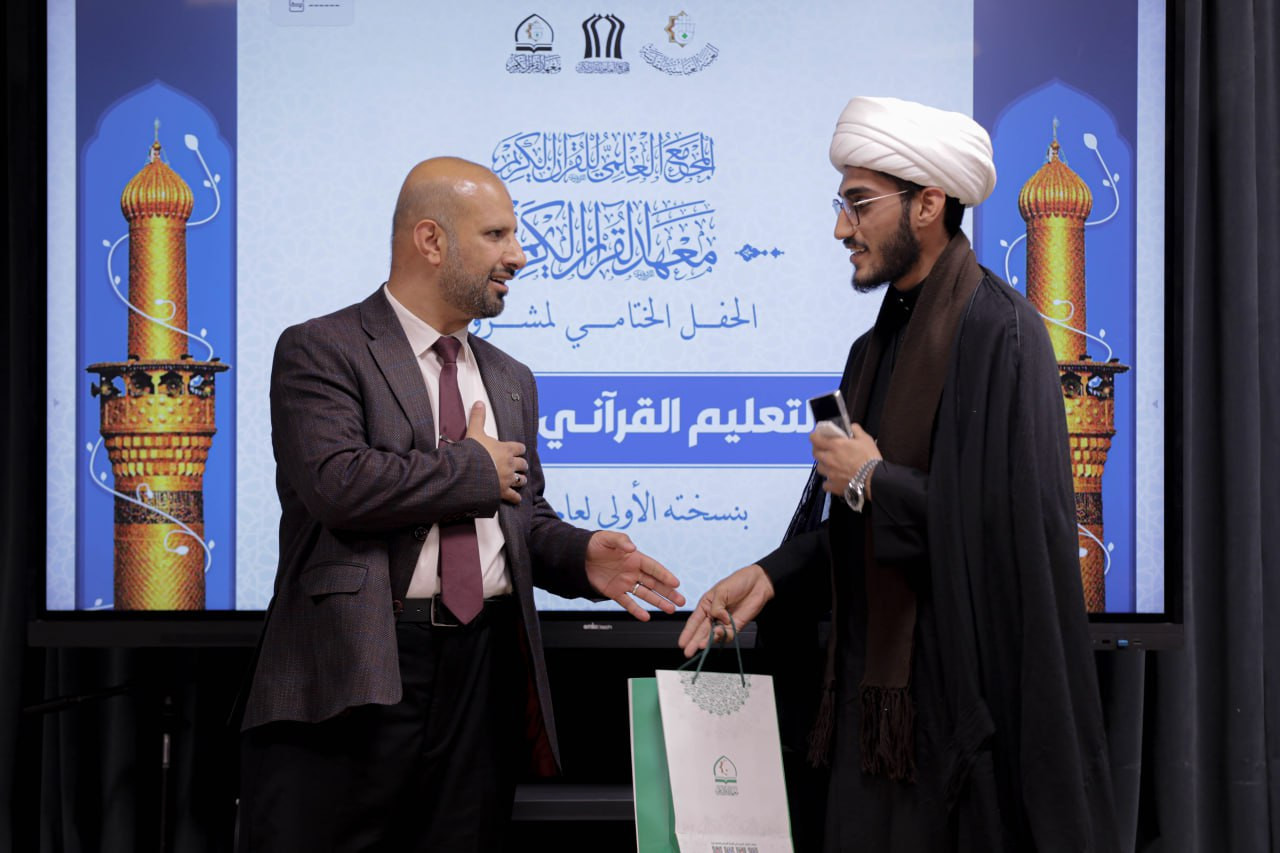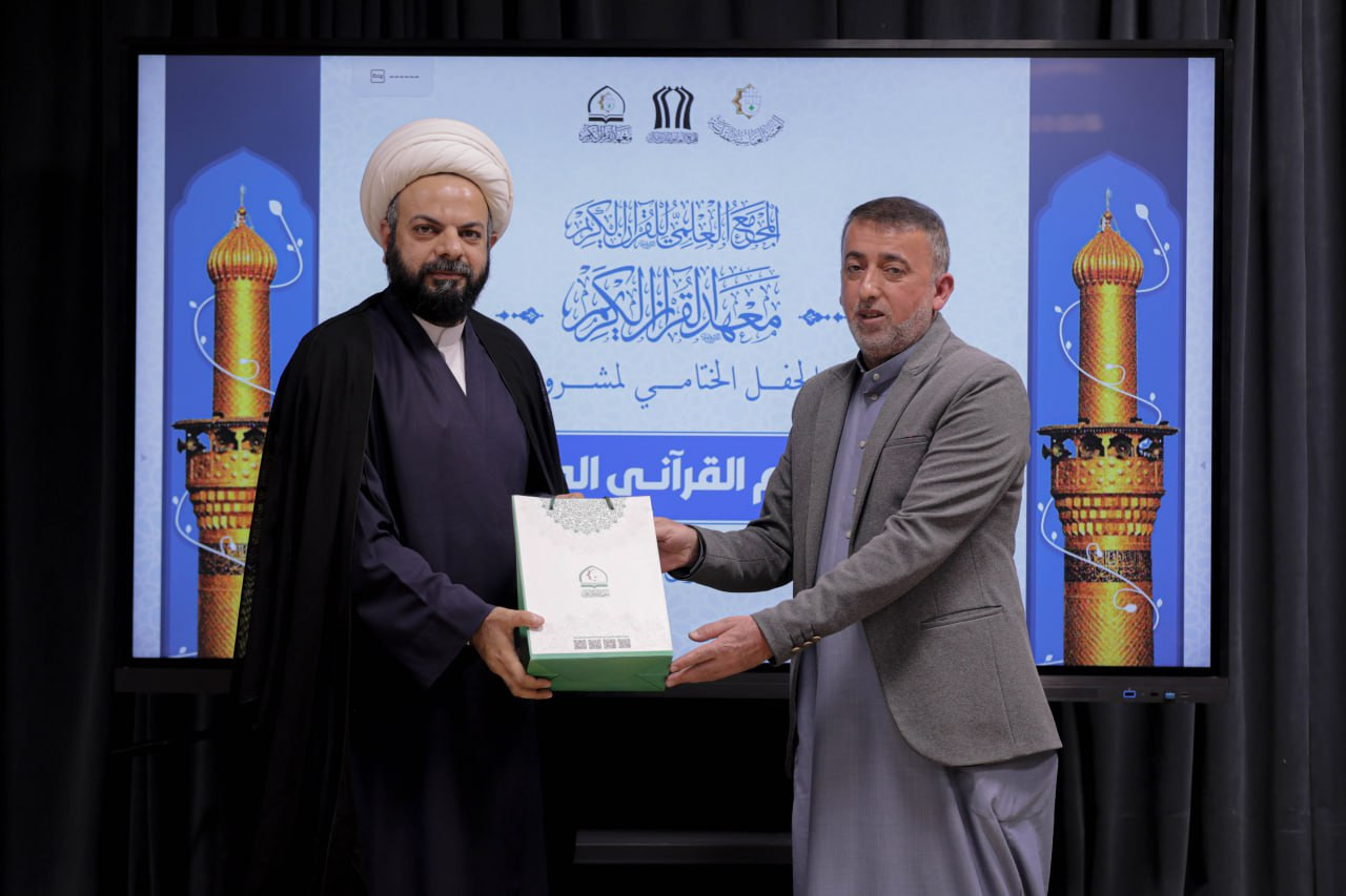 احتفى المَجمَع العلميّ للقرآن الكريم في العتبة العبّاسية المقدّسة، بتخرّج الدفعة الثانية من مشروع التعليم القرآني المستمرّ بنسخته الأولى، الذي يقيمه معهد القرآن الكريم التابع للمَجمَع. وقال مدير المعهد الشيخ جواد النصراوي: "بعد إتمام المستوى الثاني من المشروع، الذي قدّم دروسًا في المفاهيم القرآنية، والتفسير الموضوعي، وأحكام التلاوة والأداء القرآني، أقام المعهد حفلَ ختامٍ تخرّج فيه ثُلّةٌ من طلبة مشروع التعليم المستمرّ بنسخته الأولى، الذي استمرّ لمدة عام كامل". وأضاف: "شهد الحفل فقراتٍ متعددة، منها تلاوةٌ افتتاحية قدّمها أحد أساتذة المشروع القارئ الدكتور محمد الطيار، ثم كلمةُ المعهد ألقاها ممثلًا عنه أحدُ أساتذة المشروع الدكتور حيدر الشلاه، الذي بيّن فيها قابلياتِ المشاركين، مؤكّدًا أنهم سيكونون أساتذةً قرآنيين ينشرون علوم القرآن الكريم بين المجتمع، وهذا هو الهدف الأسمى الذي يسعى له المعهد". وبَيّن: "جاء بعد ذلك كلمةُ الطلبة ألقاها ممثلًا عنهم الطالب هيثم دلّول، التي شكر فيها العتبةَ العبّاسية المقدّسة ممثلةً بمعهد القرآن الكريم على الجهود التي قُدّمت لهم طيلة أيام المشروع، مؤكّدًا أنهم تلقّوا دروسًا ومفاهيمَ نمّت عندهم المعرفة القرآنية. كما شهد الحفل عرضَ فيلمٍ وثائقيّ بيّن ما قُدّم في المشروع، ثم فقرةً استعراضية لطلبة الحفظ في المعهد بينوا فيها مهاراتهم أمام الحاضرين، واختُتم الحفل بتوزيع الهدايا والشهادات التقديرية على المتخرجين".