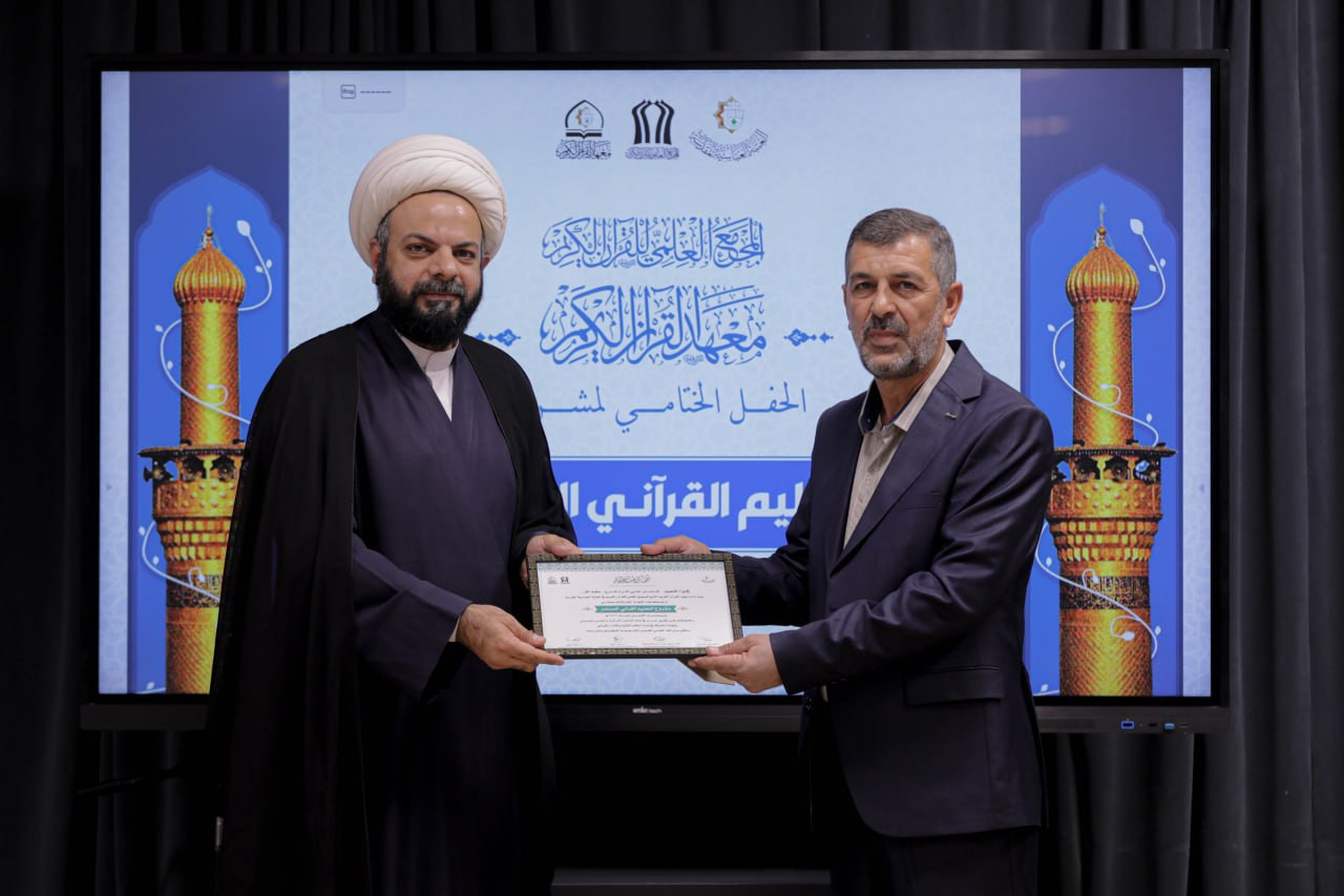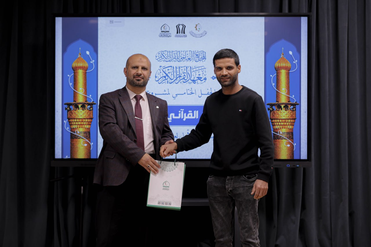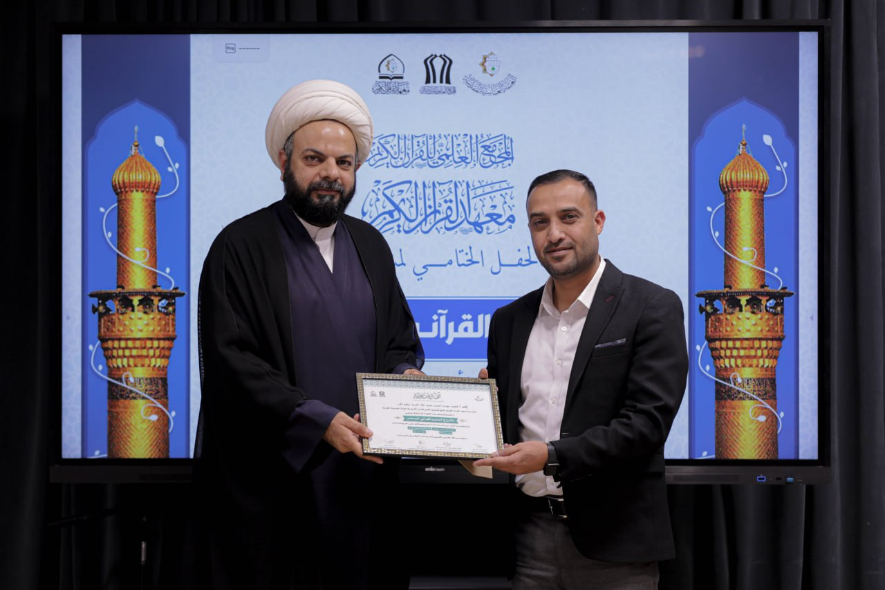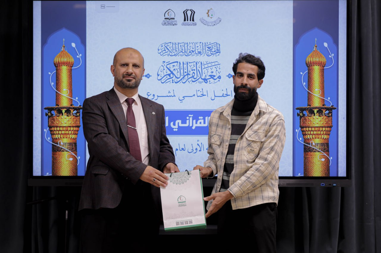 احتفى المَجمَع العلميّ للقرآن الكريم في العتبة العبّاسية المقدّسة، بتخرّج الدفعة الثانية من مشروع التعليم القرآني المستمرّ بنسخته الأولى، الذي يقيمه معهد القرآن الكريم التابع للمَجمَع. وقال مدير المعهد الشيخ جواد النصراوي: "بعد إتمام المستوى الثاني من المشروع، الذي قدّم دروسًا في المفاهيم القرآنية، والتفسير الموضوعي، وأحكام التلاوة والأداء القرآني، أقام المعهد حفلَ ختامٍ تخرّج فيه ثُلّةٌ من طلبة مشروع التعليم المستمرّ بنسخته الأولى، الذي استمرّ لمدة عام كامل". وأضاف: "شهد الحفل فقراتٍ متعددة، منها تلاوةٌ افتتاحية قدّمها أحد أساتذة المشروع القارئ الدكتور محمد الطيار، ثم كلمةُ المعهد ألقاها ممثلًا عنه أحدُ أساتذة المشروع الدكتور حيدر الشلاه، الذي بيّن فيها قابلياتِ المشاركين، مؤكّدًا أنهم سيكونون أساتذةً قرآنيين ينشرون علوم القرآن الكريم بين المجتمع، وهذا هو الهدف الأسمى الذي يسعى له المعهد". وبَيّن: "جاء بعد ذلك كلمةُ الطلبة ألقاها ممثلًا عنهم الطالب هيثم دلّول، التي شكر فيها العتبةَ العبّاسية المقدّسة ممثلةً بمعهد القرآن الكريم على الجهود التي قُدّمت لهم طيلة أيام المشروع، مؤكّدًا أنهم تلقّوا دروسًا ومفاهيمَ نمّت عندهم المعرفة القرآنية. كما شهد الحفل عرضَ فيلمٍ وثائقيّ بيّن ما قُدّم في المشروع، ثم فقرةً استعراضية لطلبة الحفظ في المعهد بينوا فيها مهاراتهم أمام الحاضرين، واختُتم الحفل بتوزيع الهدايا والشهادات التقديرية على المتخرجين".