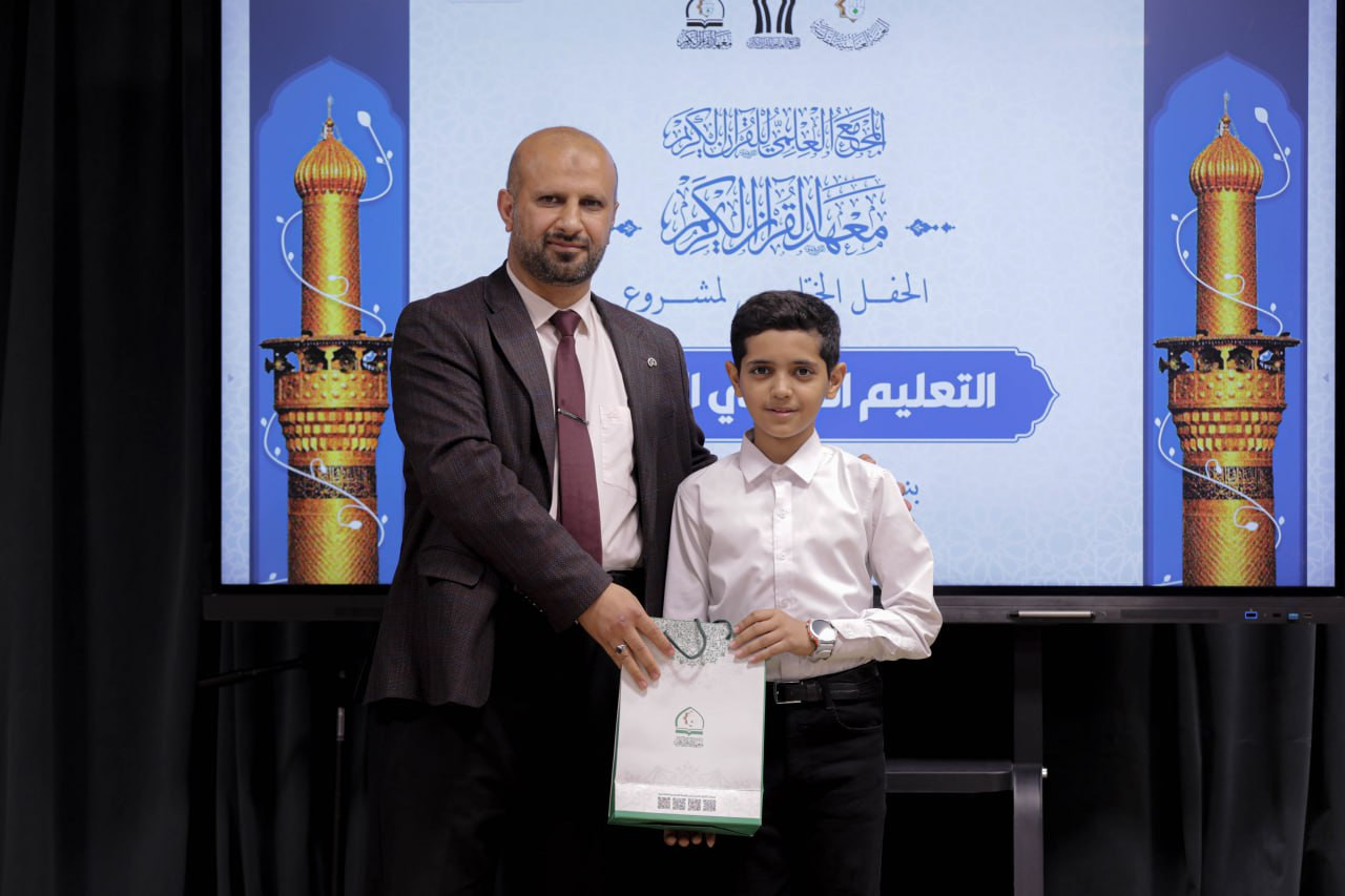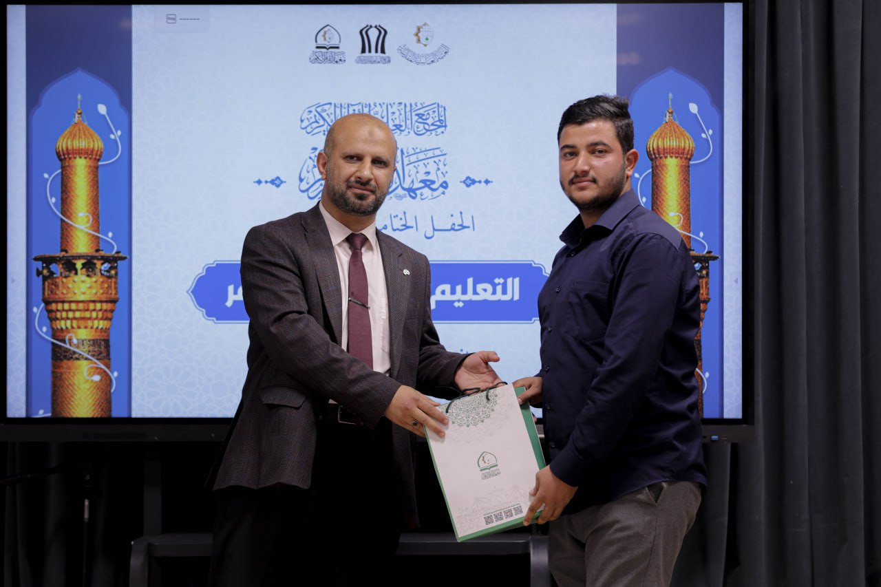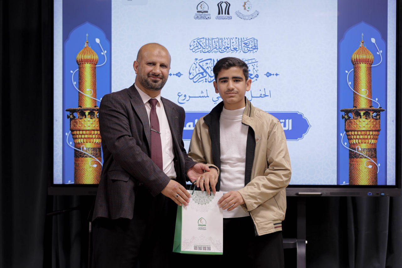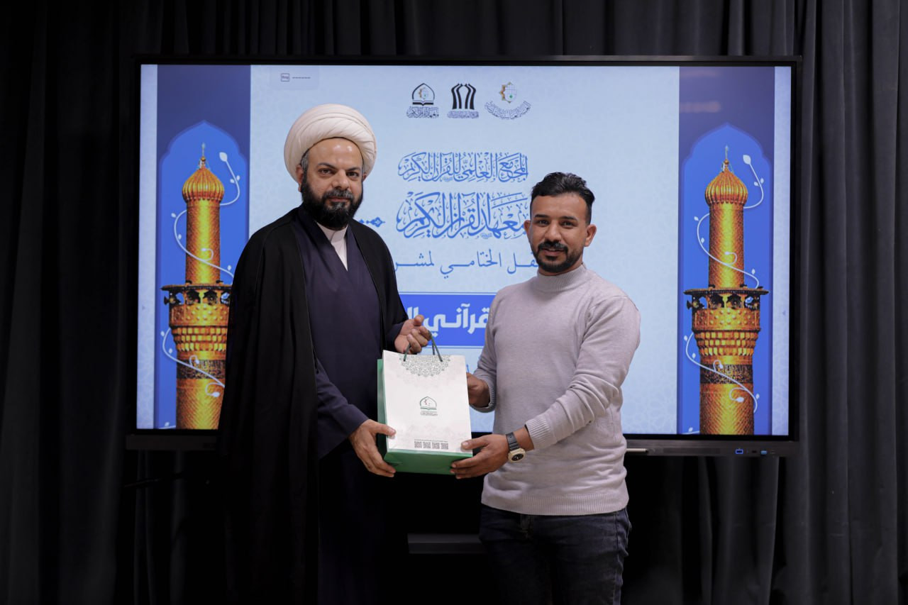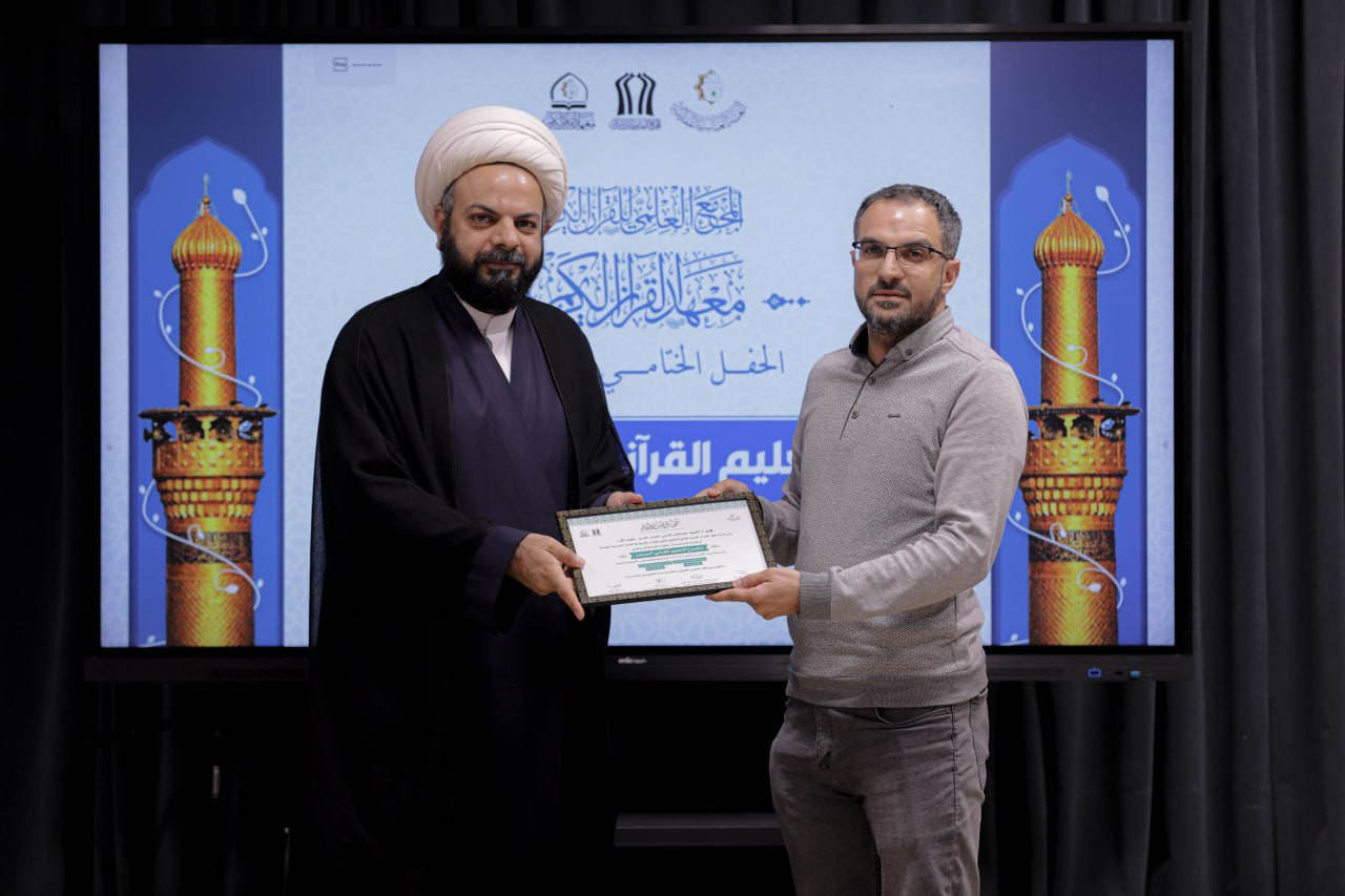 احتفى المَجمَع العلميّ للقرآن الكريم في العتبة العبّاسية المقدّسة، بتخرّج الدفعة الثانية من مشروع التعليم القرآني المستمرّ بنسخته الأولى، الذي يقيمه معهد القرآن الكريم التابع للمَجمَع. وقال مدير المعهد الشيخ جواد النصراوي: "بعد إتمام المستوى الثاني من المشروع، الذي قدّم دروسًا في المفاهيم القرآنية، والتفسير الموضوعي، وأحكام التلاوة والأداء القرآني، أقام المعهد حفلَ ختامٍ تخرّج فيه ثُلّةٌ من طلبة مشروع التعليم المستمرّ بنسخته الأولى، الذي استمرّ لمدة عام كامل". وأضاف: "شهد الحفل فقراتٍ متعددة، منها تلاوةٌ افتتاحية قدّمها أحد أساتذة المشروع القارئ الدكتور محمد الطيار، ثم كلمةُ المعهد ألقاها ممثلًا عنه أحدُ أساتذة المشروع الدكتور حيدر الشلاه، الذي بيّن فيها قابلياتِ المشاركين، مؤكّدًا أنهم سيكونون أساتذةً قرآنيين ينشرون علوم القرآن الكريم بين المجتمع، وهذا هو الهدف الأسمى الذي يسعى له المعهد". وبَيّن: "جاء بعد ذلك كلمةُ الطلبة ألقاها ممثلًا عنهم الطالب هيثم دلّول، التي شكر فيها العتبةَ العبّاسية المقدّسة ممثلةً بمعهد القرآن الكريم على الجهود التي قُدّمت لهم طيلة أيام المشروع، مؤكّدًا أنهم تلقّوا دروسًا ومفاهيمَ نمّت عندهم المعرفة القرآنية. كما شهد الحفل عرضَ فيلمٍ وثائقيّ بيّن ما قُدّم في المشروع، ثم فقرةً استعراضية لطلبة الحفظ في المعهد بينوا فيها مهاراتهم أمام الحاضرين، واختُتم الحفل بتوزيع الهدايا والشهادات التقديرية على المتخرجين".