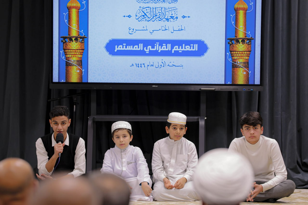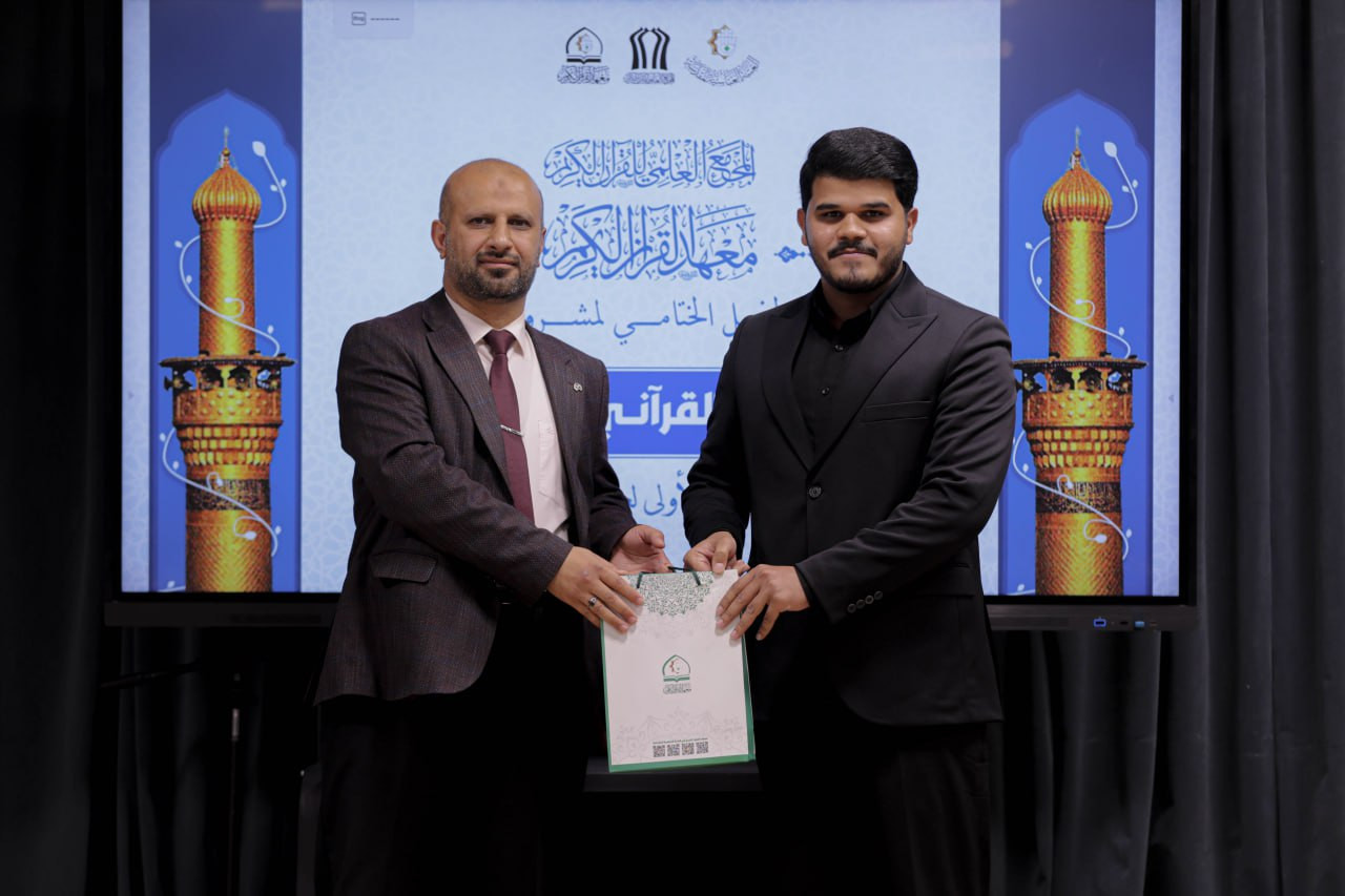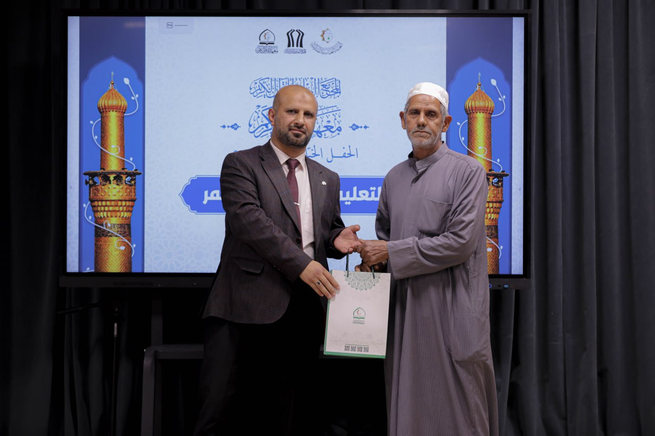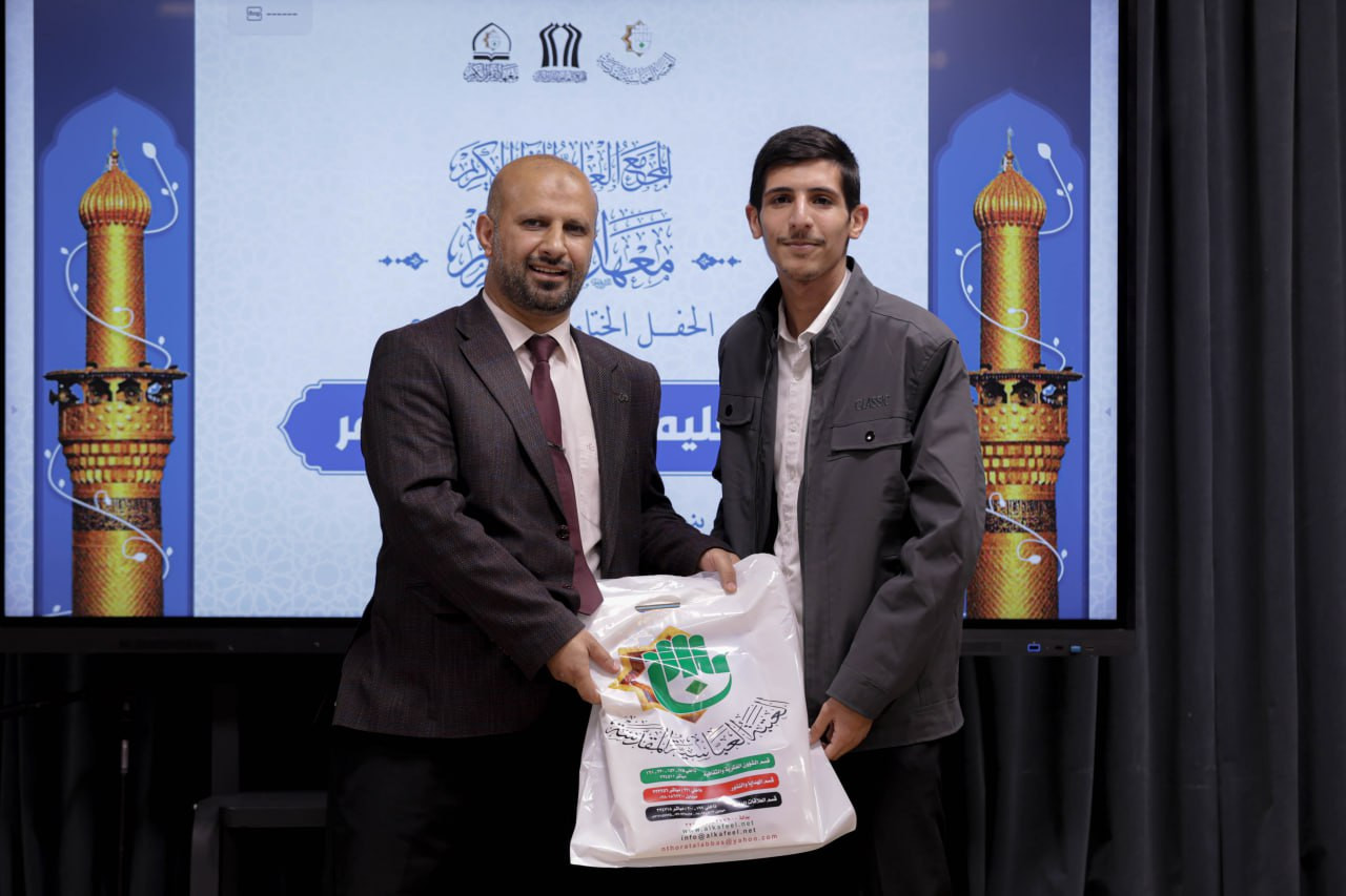 احتفى المَجمَع العلميّ للقرآن الكريم في العتبة العبّاسية المقدّسة، بتخرّج الدفعة الثانية من مشروع التعليم القرآني المستمرّ بنسخته الأولى، الذي يقيمه معهد القرآن الكريم التابع للمَجمَع. وقال مدير المعهد الشيخ جواد النصراوي: "بعد إتمام المستوى الثاني من المشروع، الذي قدّم دروسًا في المفاهيم القرآنية، والتفسير الموضوعي، وأحكام التلاوة والأداء القرآني، أقام المعهد حفلَ ختامٍ تخرّج فيه ثُلّةٌ من طلبة مشروع التعليم المستمرّ بنسخته الأولى، الذي استمرّ لمدة عام كامل". وأضاف: "شهد الحفل فقراتٍ متعددة، منها تلاوةٌ افتتاحية قدّمها أحد أساتذة المشروع القارئ الدكتور محمد الطيار، ثم كلمةُ المعهد ألقاها ممثلًا عنه أحدُ أساتذة المشروع الدكتور حيدر الشلاه، الذي بيّن فيها قابلياتِ المشاركين، مؤكّدًا أنهم سيكونون أساتذةً قرآنيين ينشرون علوم القرآن الكريم بين المجتمع، وهذا هو الهدف الأسمى الذي يسعى له المعهد". وبَيّن: "جاء بعد ذلك كلمةُ الطلبة ألقاها ممثلًا عنهم الطالب هيثم دلّول، التي شكر فيها العتبةَ العبّاسية المقدّسة ممثلةً بمعهد القرآن الكريم على الجهود التي قُدّمت لهم طيلة أيام المشروع، مؤكّدًا أنهم تلقّوا دروسًا ومفاهيمَ نمّت عندهم المعرفة القرآنية. كما شهد الحفل عرضَ فيلمٍ وثائقيّ بيّن ما قُدّم في المشروع، ثم فقرةً استعراضية لطلبة الحفظ في المعهد بينوا فيها مهاراتهم أمام الحاضرين، واختُتم الحفل بتوزيع الهدايا والشهادات التقديرية على المتخرجين".