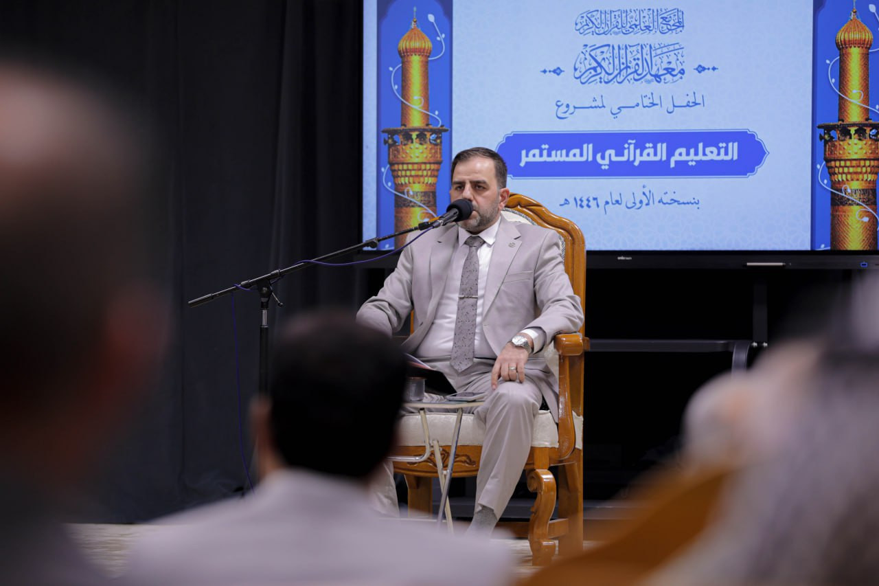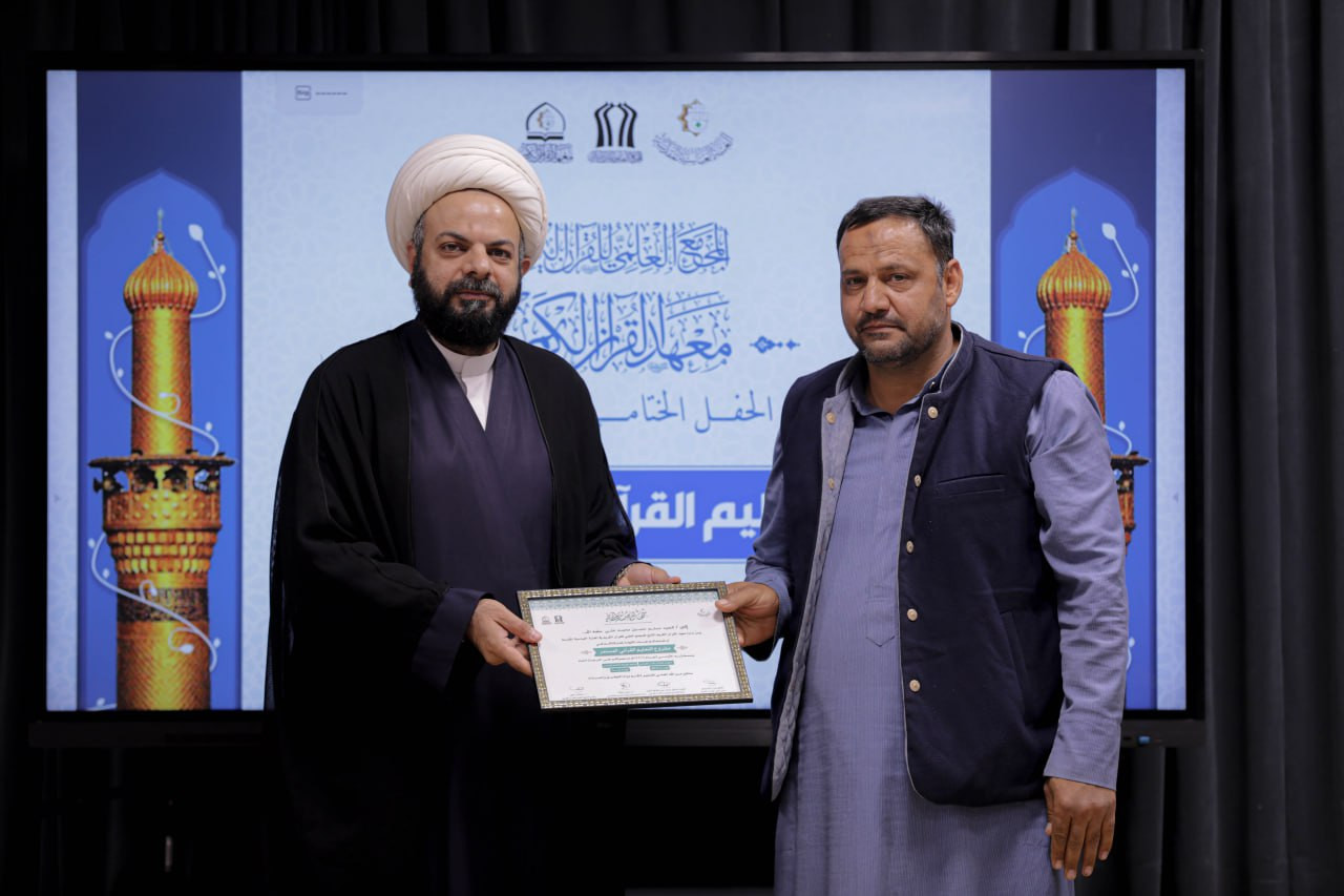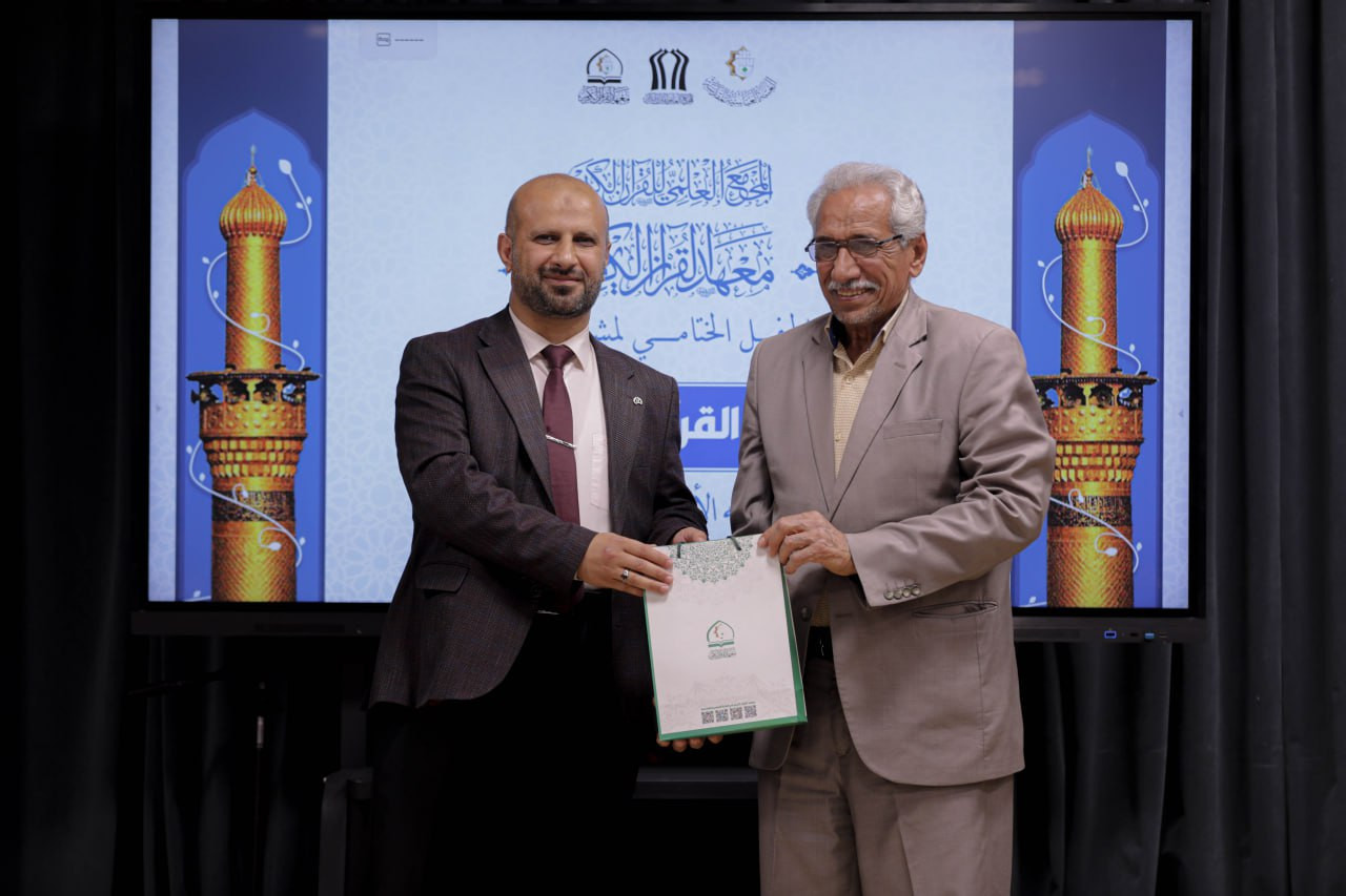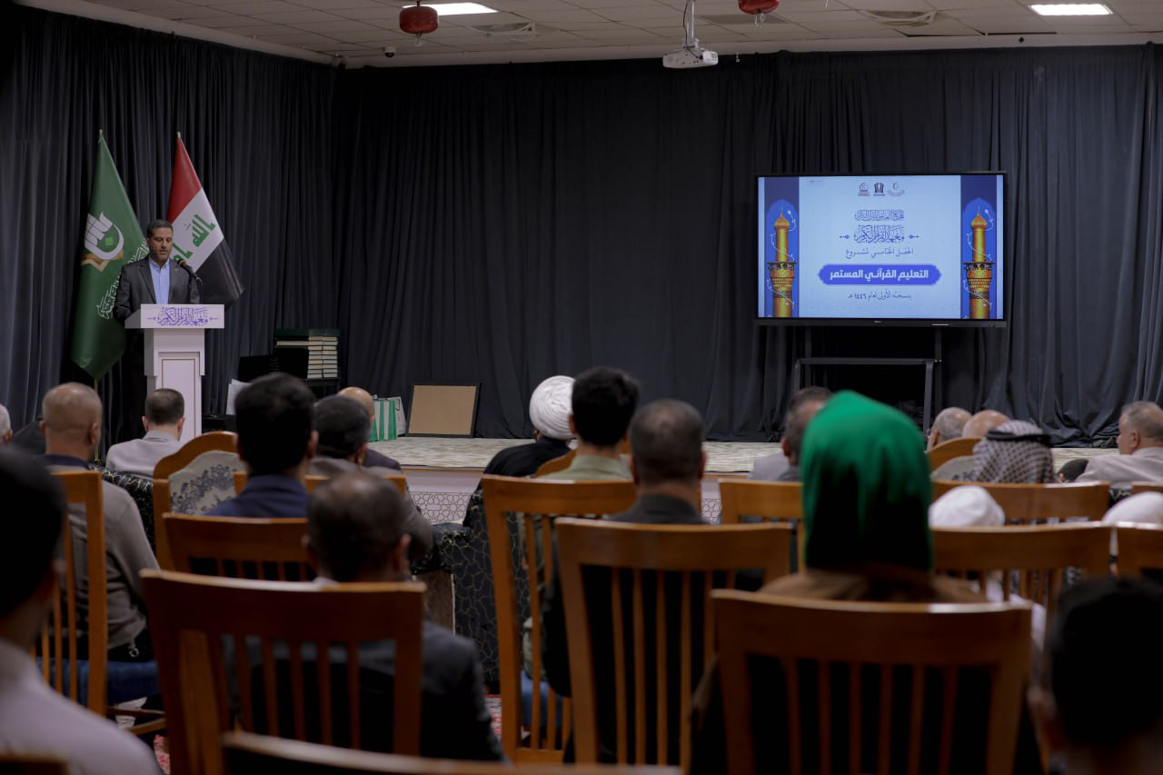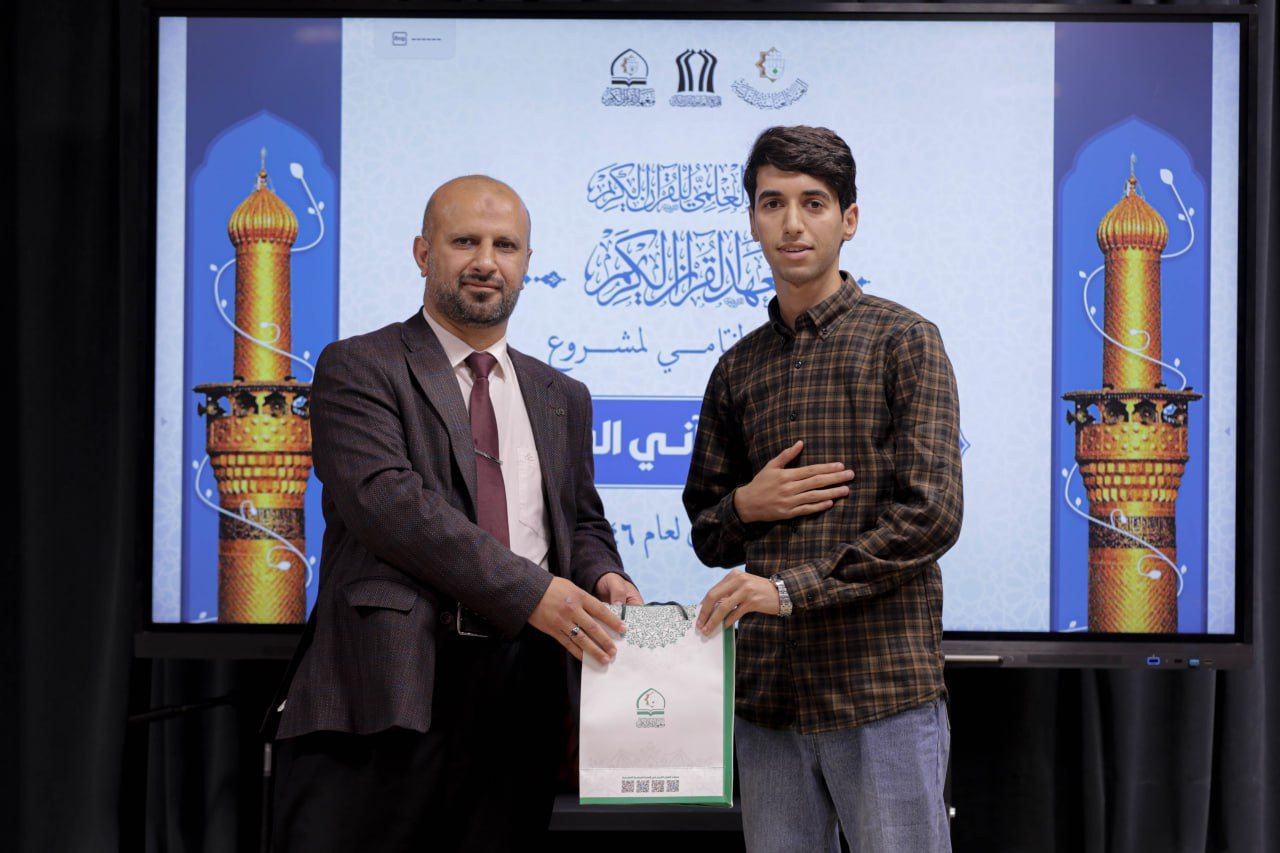 احتفى المَجمَع العلميّ للقرآن الكريم في العتبة العبّاسية المقدّسة، بتخرّج الدفعة الثانية من مشروع التعليم القرآني المستمرّ بنسخته الأولى، الذي يقيمه معهد القرآن الكريم التابع للمَجمَع. وقال مدير المعهد الشيخ جواد النصراوي: "بعد إتمام المستوى الثاني من المشروع، الذي قدّم دروسًا في المفاهيم القرآنية، والتفسير الموضوعي، وأحكام التلاوة والأداء القرآني، أقام المعهد حفلَ ختامٍ تخرّج فيه ثُلّةٌ من طلبة مشروع التعليم المستمرّ بنسخته الأولى، الذي استمرّ لمدة عام كامل". وأضاف: "شهد الحفل فقراتٍ متعددة، منها تلاوةٌ افتتاحية قدّمها أحد أساتذة المشروع القارئ الدكتور محمد الطيار، ثم كلمةُ المعهد ألقاها ممثلًا عنه أحدُ أساتذة المشروع الدكتور حيدر الشلاه، الذي بيّن فيها قابلياتِ المشاركين، مؤكّدًا أنهم سيكونون أساتذةً قرآنيين ينشرون علوم القرآن الكريم بين المجتمع، وهذا هو الهدف الأسمى الذي يسعى له المعهد". وبَيّن: "جاء بعد ذلك كلمةُ الطلبة ألقاها ممثلًا عنهم الطالب هيثم دلّول، التي شكر فيها العتبةَ العبّاسية المقدّسة ممثلةً بمعهد القرآن الكريم على الجهود التي قُدّمت لهم طيلة أيام المشروع، مؤكّدًا أنهم تلقّوا دروسًا ومفاهيمَ نمّت عندهم المعرفة القرآنية. كما شهد الحفل عرضَ فيلمٍ وثائقيّ بيّن ما قُدّم في المشروع، ثم فقرةً استعراضية لطلبة الحفظ في المعهد بينوا فيها مهاراتهم أمام الحاضرين، واختُتم الحفل بتوزيع الهدايا والشهادات التقديرية على المتخرجين".