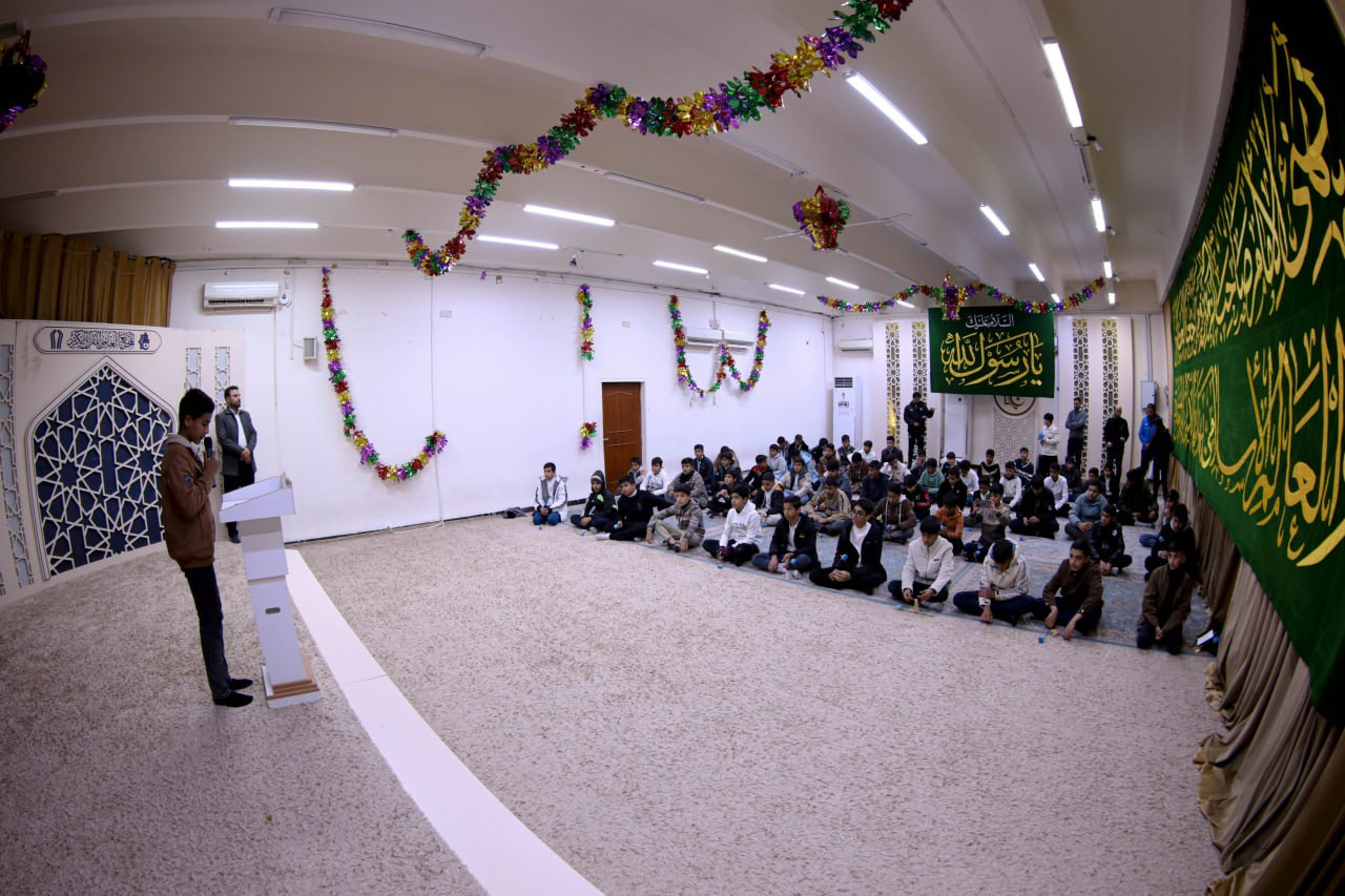 وقال مدير المعهد الشيخ جواد النصراوي: "حضر الحفلَ جمعٌ من طلبة المدارس في كربلاء، وأُقيم ضمن المشروع القرآني في المدارس، وافتُتح بتلاوةٍ قرآنية وفقرةٍ إنشادية إحياءً للمناسبة."